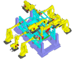 Of course before they can even start a cell is built and tasks are assigned to these Robots. A great attention is made when all the Robots, Tools, Panels & other Equipments are put in the Cell at the right place in the right orientation with the right spacing between them and many other fine considerations. While reachability & avoidance of joint lock (singularities) are key considerations, Safety and Ease of Maintenance are always higher priorities. Each Robot & each Tool is assigned optimum level of tasks, e.g. no. of spots, mix of handling & welding, etc. so that the Cell is well balanced and Humans and Robots can finish their assigned tasks well within the Cycle Time with a safety margin of time to spare.